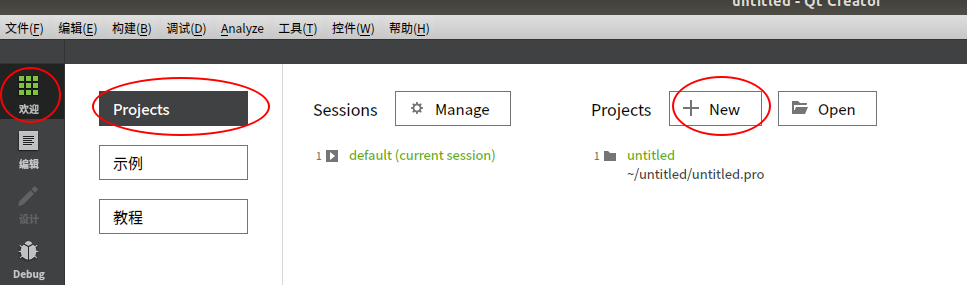 通过主界面的"欢迎" --> "工程" --> "新建" 可以打开创建工程的页面,创建具体的元心工程。
