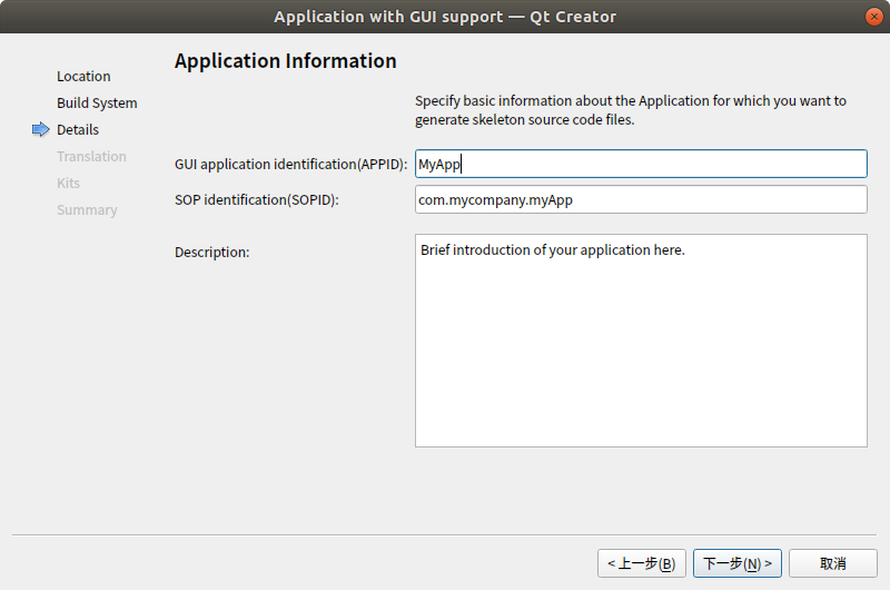填写appid,以及sopid,需要保证两个ID的唯一性,即同一个设备中应用的ID全局唯一