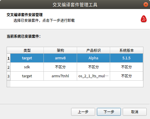 选中套件,下一步,进入卸载确认界面,无需卸载点击上一步或取消退出套件管理功能